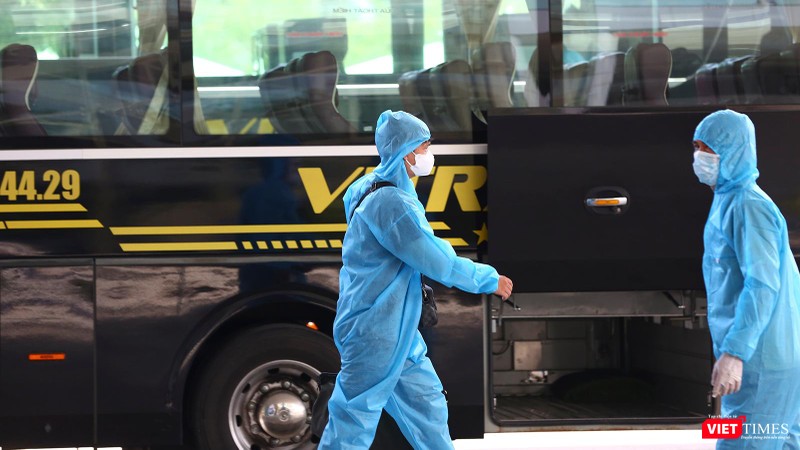 Lúc này, phía ngoài nhà ga, xe chở số công dân về nơi cách ly đã sẵn sàng