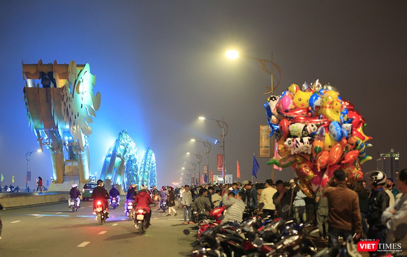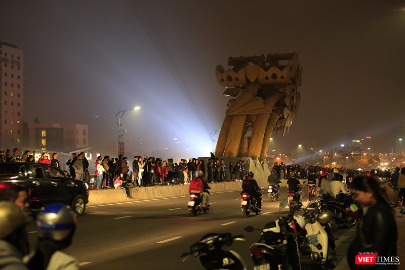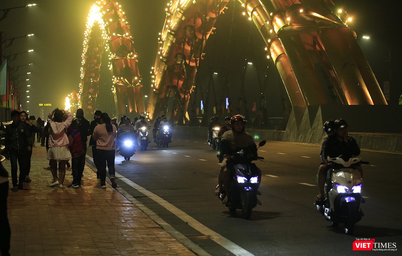 Một diễn biến khác, người dân Đà Nẵng di chuyển về cầu Rồng để xem bắn pháo hoa đêm giao thừa