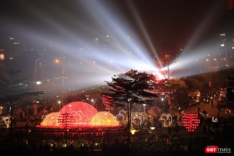 Màn pháo hoa đêm giao thừa được bắn từ cầu Nguyễn Văn Trỗi