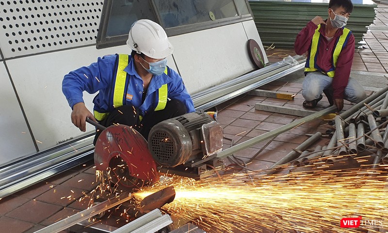 Công nhân thi công khẩn trương