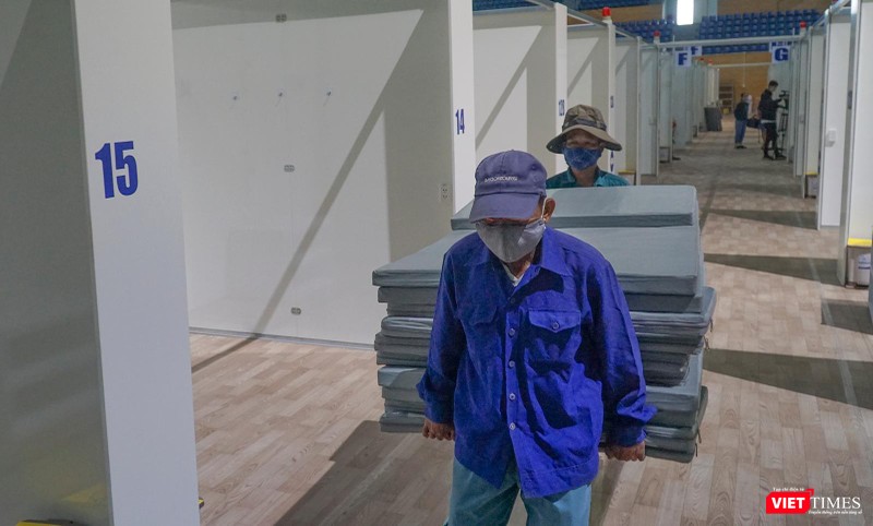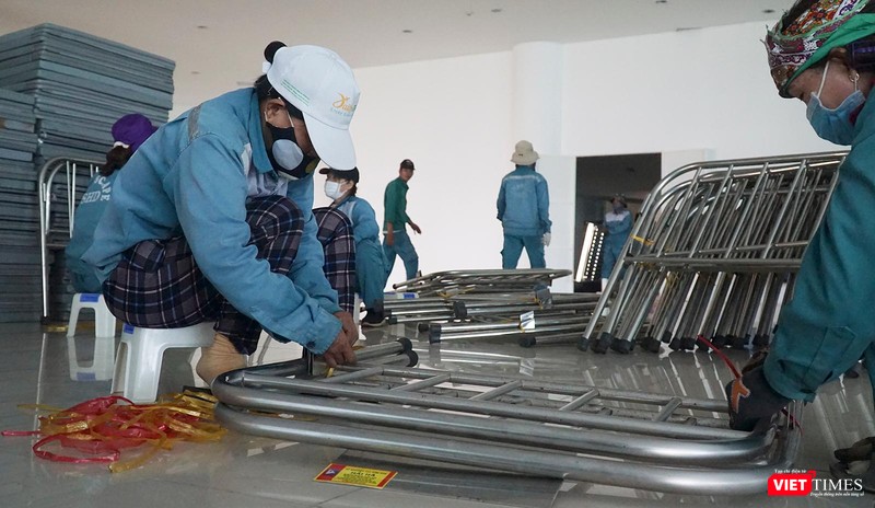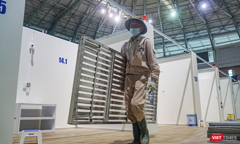 VietTimes xin gửi đến bạn đọc một số hình ảnh công nhân tháo dỡ Bệnh viện dã chiến Tiên Sơn để chi viện cho các tỉnh phía bắc: