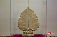 Cận cảnh độc bản lá bồ đề dát vàng 24k lớn nhất Việt Nam