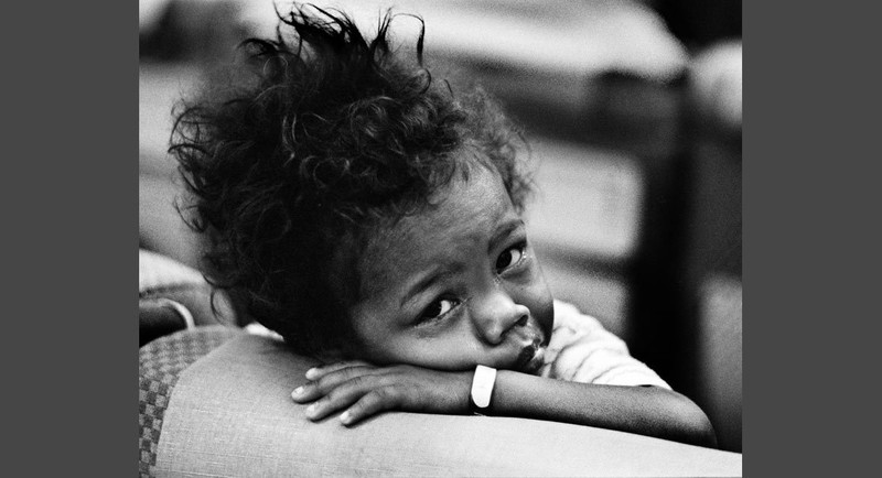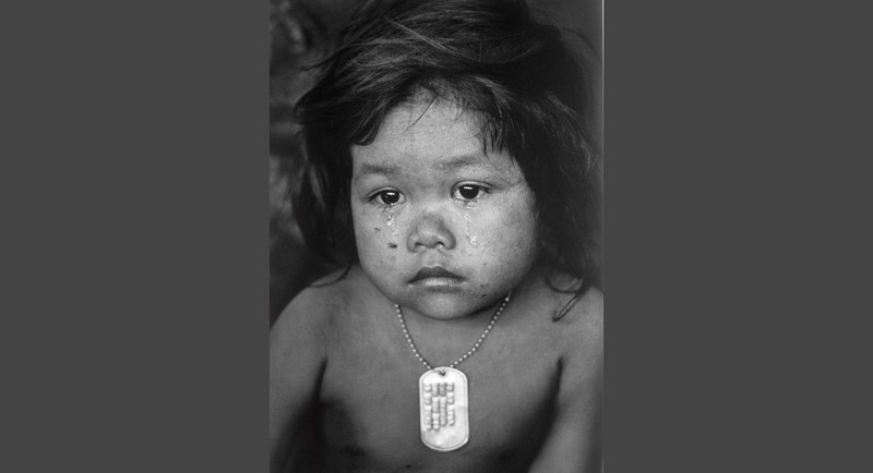 31/03/1975: Tôi đã thực hiện một bức chân dung của một em bé tị nạn Campuchia trong hàng ngàn người chen chúc tại một khách sạn đổ nát bên bờ sông Mekong. Tôi thấy em bé đeo một cái thẻ bài. Hình ảnh của cô bé là biểu tượng tất cả những đau khổ mà trẻ em trên toàn thế giới vì cuộc chiến tranh vô nghĩa. Tôi luôn bị ám ảnh bởi khuôn mặt của em bé và thậm chí khi du lịch tới Phnom Penh vài năm trước, tôi đã thử tìm em bé này, nhưng không có may mắn gặp lại.