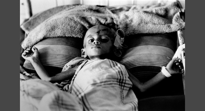 Một đứa trẻ tị nạn Campuchia tại một bệnh viện ở Phnom Penh, Campuchia ngày 29/3/1975. Hai tuần sau, lực lượng Khmer Đỏ đánh chiếm hoàn toàn Campuchia.