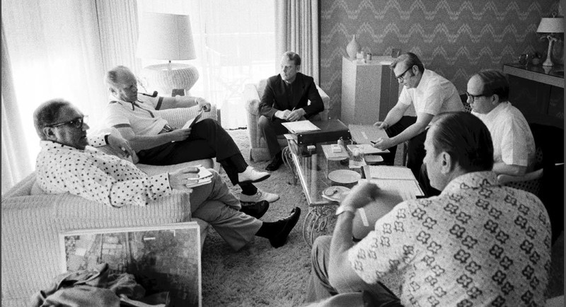 Trong bức ảnh hiếm có này, các quan chức CIA trực tiếp tóm tắt tình hình cho tổng thống, có mặt trong cuộc họp là Giám đốc đơn vị tình báo CIA khu vực Đông Á Ted Shackley và Phó Giám đốc phụ trách các văn phòng tình báo an ninh quốc gia George Carver đang cân nhắc và đưa ra cho tổng thống những đánh giá sơ lược.