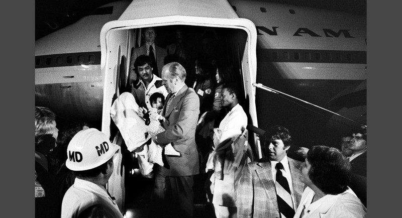 Ngày 5/4/1975: Tổng thống và phu nhân bay đến San Francisco sau khi cuộc họp của ông với Tướng Weyand và các cộng sự để chào đón một chuyến bay chở trẻ mồ côi Việt đến Mỹ - một phần của Chiến dịch Babylift, sơ tán trẻ em từ khu vực Đông Nam Á. Khi chuyến bay cuối cùng ra khỏi Nam Việt Nam, Mỹ đã di tản hơn 3.300 trẻ sơ sinh và trẻ em. Cùng với các cuộc di tản khác, hơn 110.000 người tị nạn đã sơ tán khỏi Nam Việt Nam vào thời điểm cuối cuộc chiến tranh.