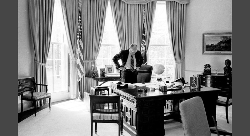 25/3/1975: Sau khi các quan chức ra về, tôi chụp bức ảnh này khi Tổng thống còn một mình trong văn phòng, rõ ràng ông rất thất vọng. Chúng tôi đã nói chuyện về chuyến đi, tôi nói với ông rằng, tôi có kinh nghiệm ở Việt Nam, tôi muốn đi cùng Weyand. Tổng thống đồng ý và nói rằng ông sẽ chờ tôi cung cấp cho ông ta một quan điểm khách quan và thẳng thắn khi tôi trở lại. Văn phòng của tôi ở tầng trệt của Nhà Trắng, tôi trở về và nói với nhân viên rằng tôi sẽ có một chuyến đi vào ngày hôm sau. Tôi treo một dấu hiệu trên cánh cửa của tôi và nói: "Tôi đến Việt Nam, sẽ trở lại trong 2 tuần". Nhân viên của tôi nghĩ rằng tôi đã nói đùa cho đến khi tôi không quay lại văn phòng trong gần 2 tuần sau đó. Tối hôm ấy, tôi đã đi để nói lời tạm biệt với gia đình Ford và đề tổng thống cho vay một khoản tiền. Đó là những ngày trước khi có ATM. "Các ngân hàng đã đóng cửa, tôi sẽ đi trước khi họ mở cửa", tôi nói. Ford lôi tất cả những đồng tiền trong ví của mình. "Ở đây là 47USD", ông chìa ra cho tôi xem.