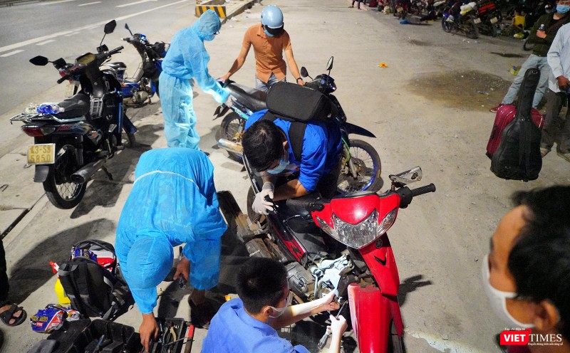 Một số hình ảnh của đội SOS sinh viên hỗ trợ đón, sửa chữa xe máy cho người dân hành trình từ TP HCM về quê đi qua địa phận TP Đà Nẵng (ảnh Phát Lê):