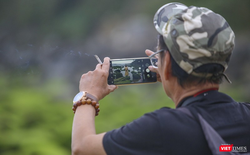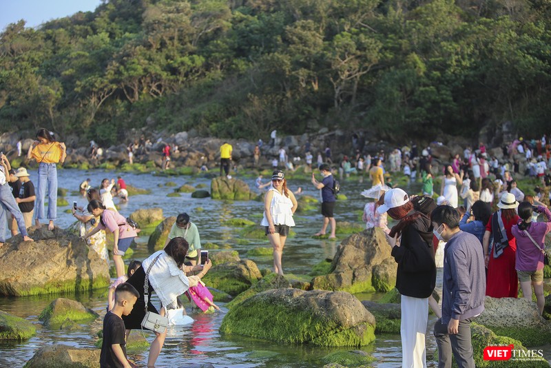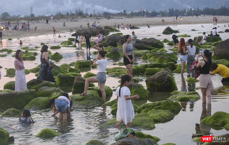 Du khách và người dân đến gành đá Nam Ô (Đà Nẵng) để checkin, chụp ảnh lưu niệm