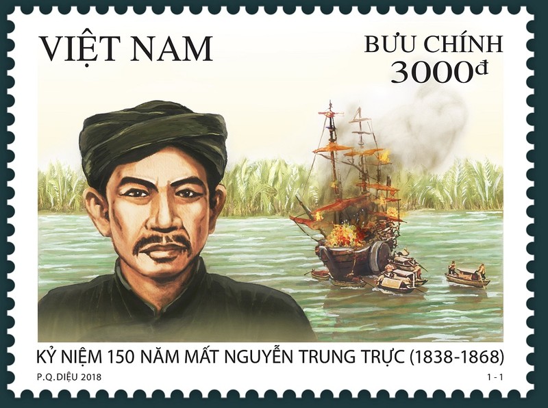 Bộ tem gồm 01 mẫu do họa sỹ Phạm Quang Diệu (Tổng công ty Bưu điện Việt Nam) thiết kế theo phong cách đồ họa với sự phối mầu chặt chẽ, khắc họa chân dung Anh hùng dân tộc Nguyễn Trung Trực gắn với chiến thắng trong “Trận hỏa hồng Nhật Tảo”, đốt và đánh chìm tàu Espérance (Hi vọng) của thực dân Pháp trên sông Nhật Tảo. Bằng bút pháp tả thực, mẫu tem cũng thể hiện được khí phách hiên ngang, bất khuất cùng tinh thần yêu nước của Anh hùng dân tộc Nguyễn Trung Trực.