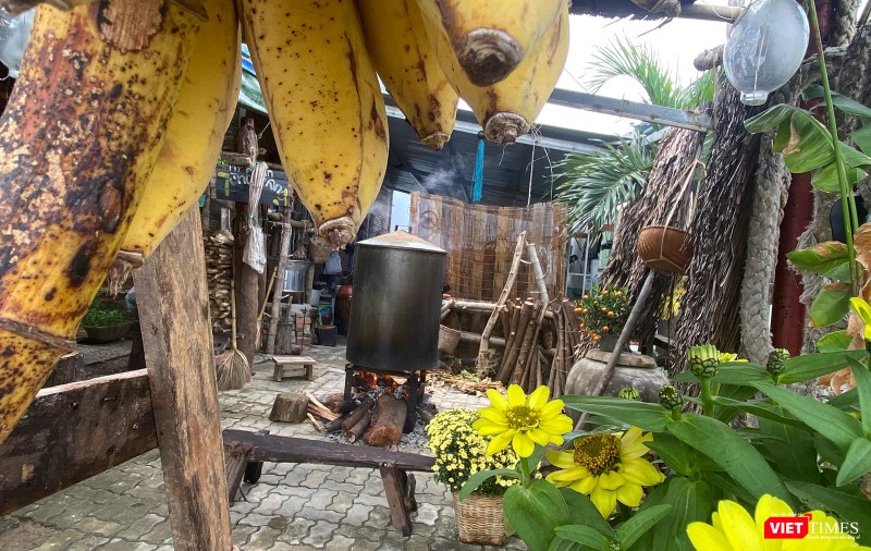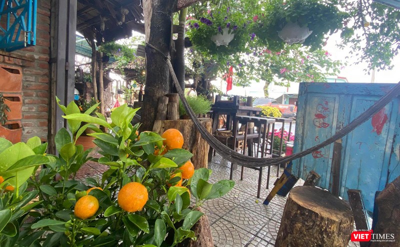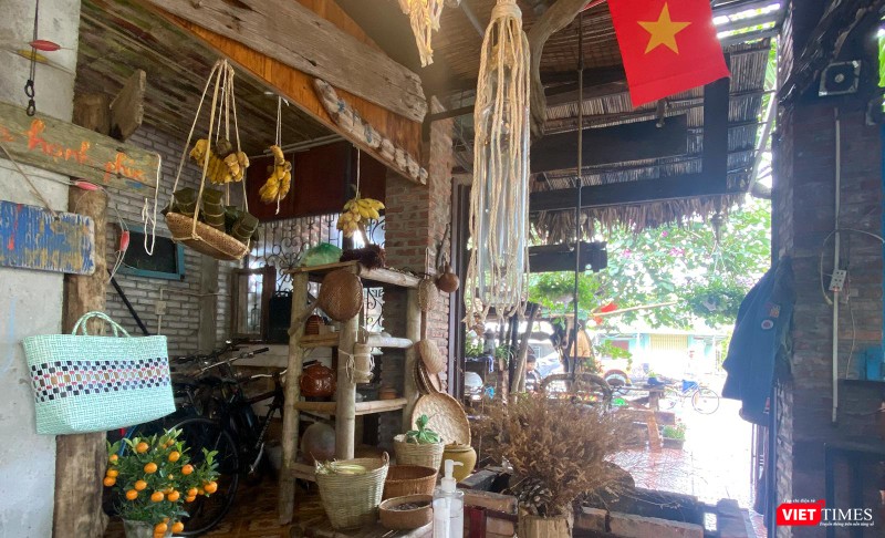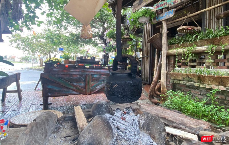 Trong khuôn viên địa chỉ 110 Lý Văn Phức (quận Ngũ Hành Sơn, TP Đà Nẵng), những hình ảnh về ngôi nhà xưa với mái tranh, băng ghế gỗ… cùng cách trang trí bắt mắt, hoài niệm xưa đã “hớp hồn”người xem.