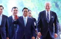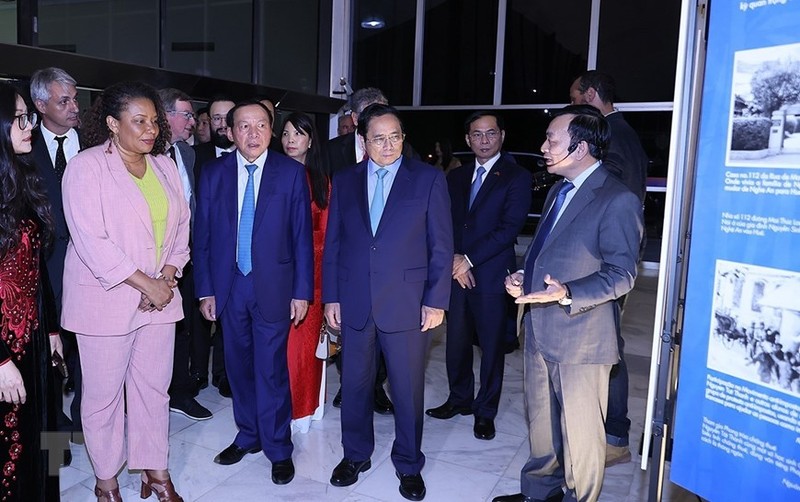 Thủ tướng Phạm Minh Chính và các đại biểu tham quan Triển lãm ảnh về Chủ tịch Hồ Chí Minh và đất nước, con người Việt Nam. (Ảnh: Dương Giang/TTXVN)