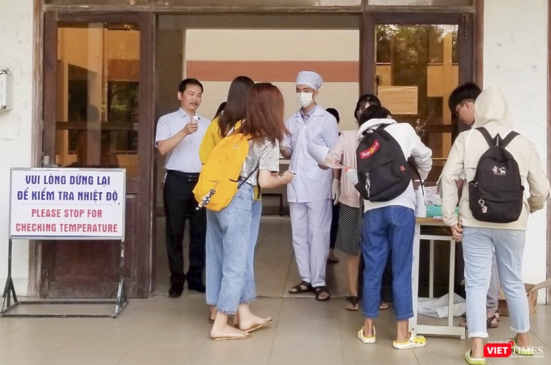 Sinh viên đến lớp được kiểm tra thân nhiệt, khuyến cáo rửa tay bằng cồn sát khuẩn, phát khẩu trang tờ rơi và các khuyến cáo khi có những triệu chứng bất thường như ho, sốt,... Nhiều sinh viên tỏ ra phấn khởi khi được quay trở lại lớp sau thời gian dài nghỉ học để phòng dịch và vui vẻ tuân thủ quy định kiểm tra thân nhiệt khi vào lớp.