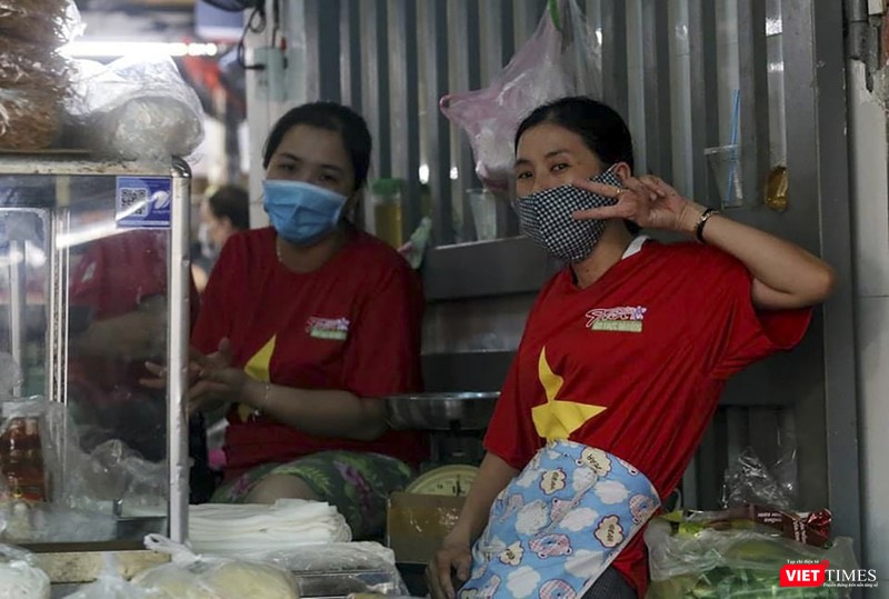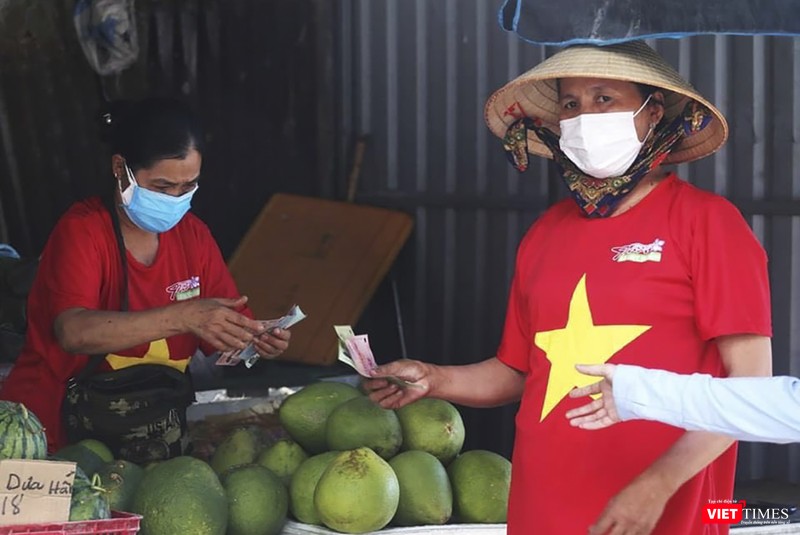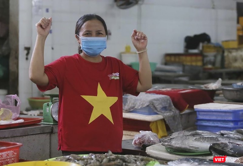 Tiểu thương Đà Nẵng mặc áo cờ đỏ sao vàng cổ động vượt qua dịch COVID-19