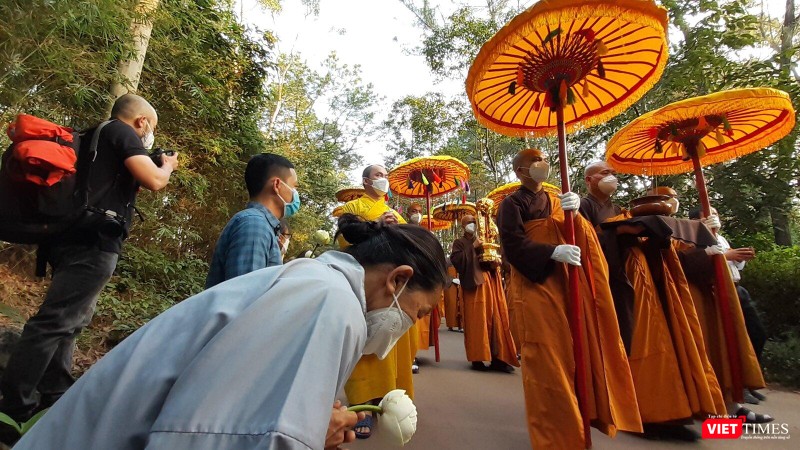 Từ sáng sớm, hàng ngàn tăng ni, phật tử, người dân... đổ về Tổ đình Từ Hiếu (TP Huế, tỉnh Thừa Thiên Huế), rồi nối bước đi theo di hài Thiền sư Thích Nhất Hạnh đến Công viên nghĩa trang Vĩnh Hằng Vườn Địa Đàng (phường Thủy Bằng, TP Huế) để làm lễ Trà Tỳ.