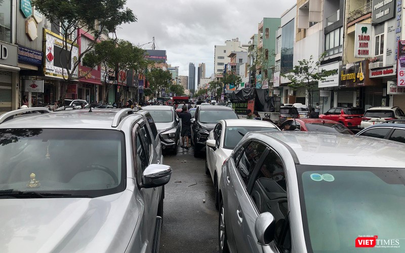 Hàng trăm phương tiện ô tô bị chết máy nằm la liệt trên tuyến đường Lê Duẫn, quận Hải Châu (đoạn Ông Ích Khiêm đến Hoàng Hoa Thám)