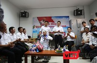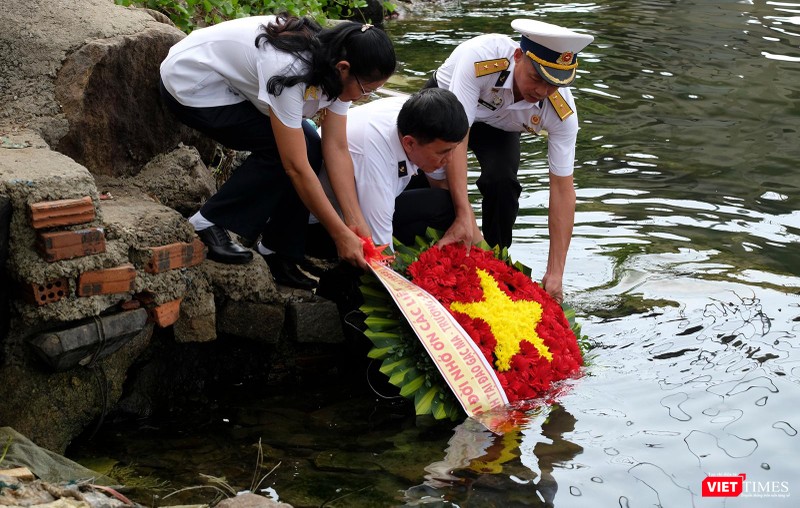 Sau lễ tưởng niệm, Đại tá Hoàng Duy Lập - nguyên Chỉ huy trưởng Lữ đoàn công binh 83 (Quân chủng Hải quân) cùng các thành viên cùng dâng hương và dong thuyền hướng ra cửa biển để thả đèn, hoa ngưỡng vọng linh hồn 64 cán bộ chiến sỹ, đồng đội, đồng chí đang nằm lại với mẹ biển bao la.