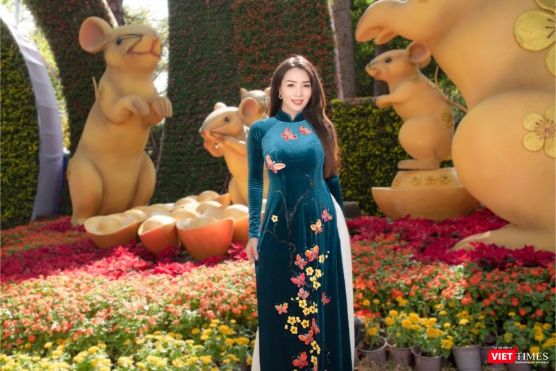 Nhà báo - MC Phước Lập, đại sứ áo dài Sơn Ngọc Minh lịch lãm du xuân trong áo dài Việt Hùng. Hoa hậu Lê Nhàn, ca sĩ Hạnh Nguyên, diễn viên điện ảnh Đinh Y Nhung đẹp thanh khiết trong áo dài Việt Hùng, dịu dàng xuống phố, thả dáng cùng hoa xuân.
