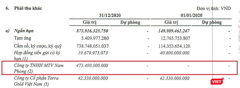 Đáng chú ý, tại thời điểm cuối năm 2020, công ty này bất ngờ ghi nhận khoản phải thu ngắn hạn tới 473,4 tỉ đồng với Công ty NHH MTV Nam Phong (Nam Phong).