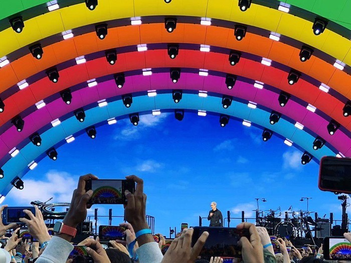Một sân khấu với máy che hình vòm được trang trí màu sắc cầu vồng đặt tại trung tâm Apple Park. Đây là nơi diễn ra các tiết mục trình diễn âm nhạc của Lady Gaga và là sân khấu chính của sự kiện.