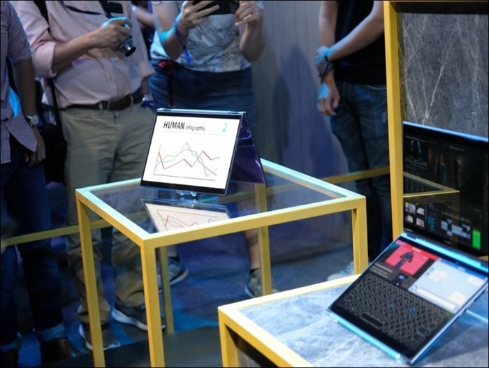 Dự án Precog áp dụng nhân tố 2 màn hình mới lạ với khả năng đa dụng, mở rộng và gia tăng khả năng làm việc. Với bản lề gập xoay 360° ghép nối hai màn hình, chiếc máy có thể được sử dụng ở 4 chế độ — Đứng, Sách, Lều, và Nằm Phẳng — cung cấp gấp đôi diện tích hiển thị trực quan so với những dòng máy tính thông thường.