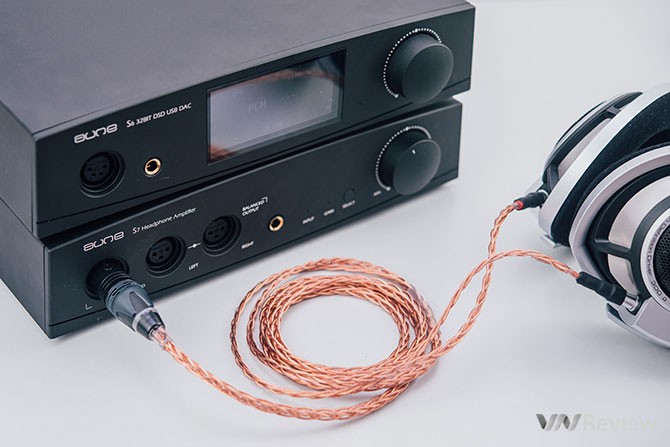 Trong hình HD800 được nâng cấp dây dẫn với PW audio no.5 tám lõi đồng tinh khiết 7N với chân cắm balance XLR 4-pin
