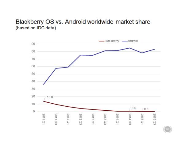 Tựu chung lại, chiến lược của Chen là đưa BlackBerry trở thành một công ty phần mềm chuyên biệt cho các thiết bị cầm tay. Để tăng tính cạnh tranh, hãng sẽ tập trung nhiều hơn vào các giải pháp quản lý thiết bị di động và bảo mật cho thiết bị chạy hệ điều hành Android. Điều này đồng nghĩa với việc hệ điều hành BlackBerry (cũng như các thiết bị chạy hệ điều hành BlackBerry) sẽ bị chính công ty mẹ “ngó lơ”. Mọi việc đã thay đổi! BlackBerry sẽ tận dụng lợi thế bảo mật vốn có, kết hợp cùng công nghệ trên nền tảng Android để định hướng phát triển trong tương lai. Chính CEO Chen cũng không đưa ra bất kỳ một cam kết nào về việc sẽ ra mắt một hệ điều hành BlackBerry hay một thiết bị chạy BlackBerry OS tiếp theo. Vì thế, trong năm 2016 sẽ là năm BlackBerry OS “trăn trối” những lời cuối cùng: “BlackBerry OS hi sinh để thương hiệu BlackBerry được tồn tại.