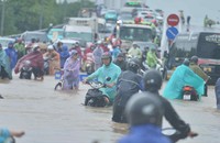 Đường phố Hà Nội chìm trong "biển nước", người dân vật lộn di chuyển