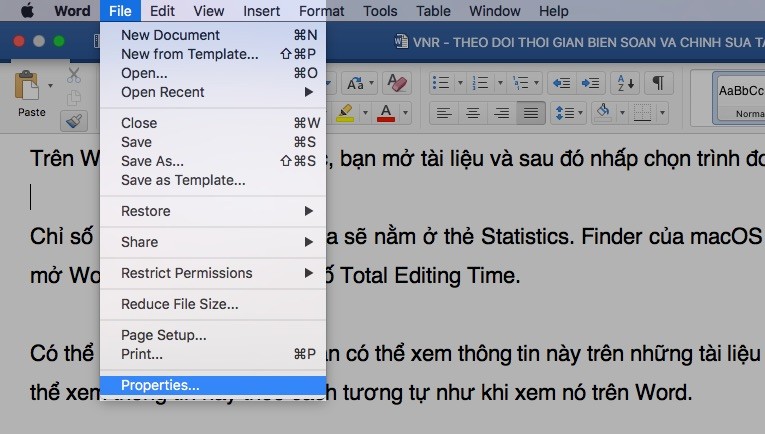 Cách tìm tổng thời gian chỉnh sửa tài liệu Word trên Mac