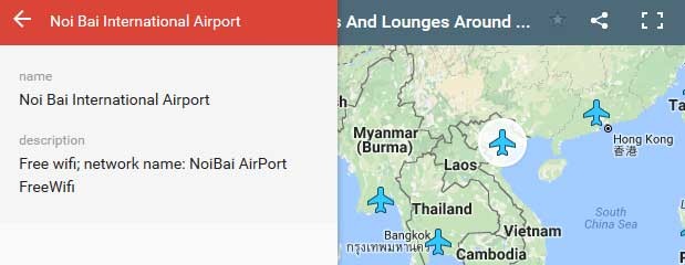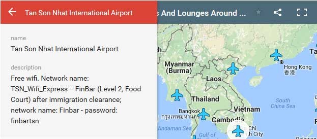 Bạn có thể xem bản đồ mật khẩu Wi-Fi tại các sân bay ở đây, bản đồ này vừa được cập nhật vào ngày 28/12/2016.