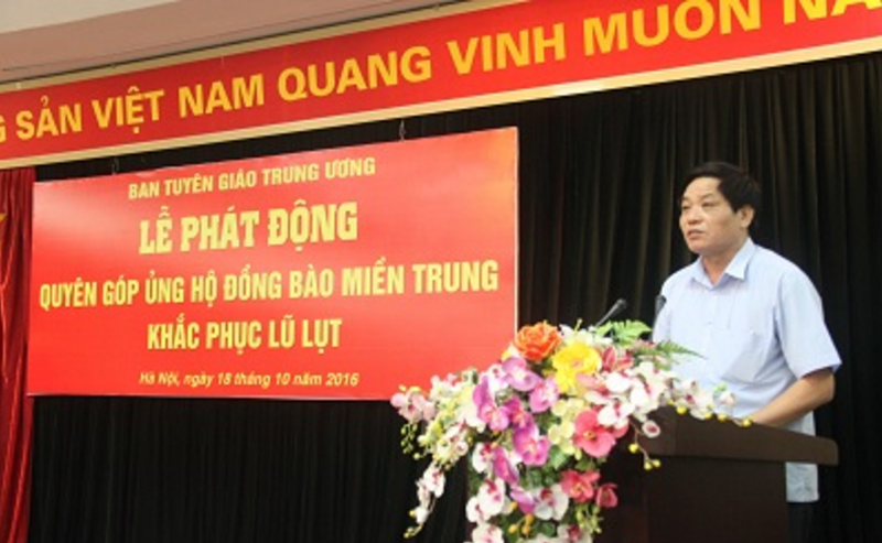 Chiều 18-10, Ban Tuyên giáo Trung đã tổ chức lễ phát động quyên góp ủng hộ đồng bào miền Trung khắc phục lũ lụt. Đồng chí Bùi Thế Đức, Bí thư Đảng ủy, Phó Trưởng ban Tuyên giáo Trung ương đã tới dự lễ phát động.