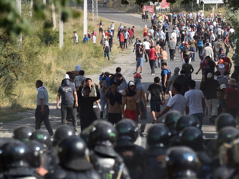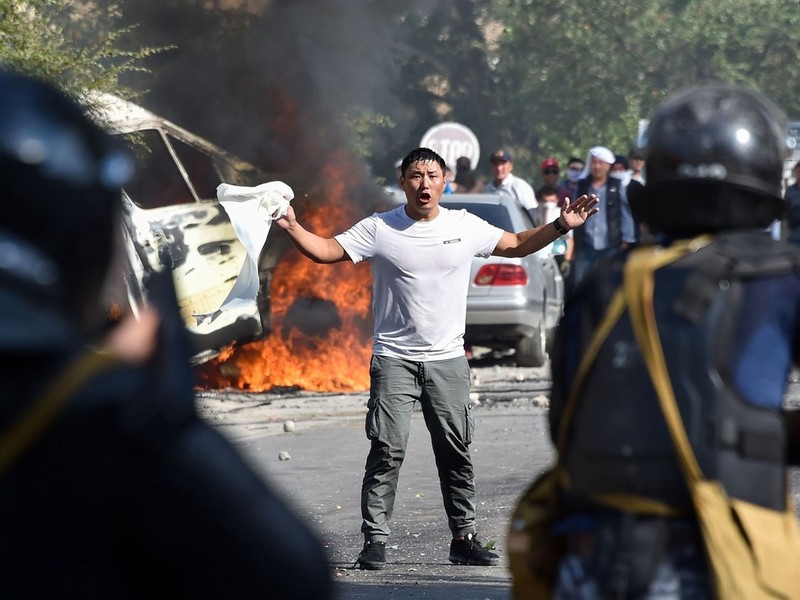 Những người ủng hộ cựu tổng thống Atambayev và nhân viên thực thi pháp luật đã đụng độ nhau. Một thành viên của lực lượng đặc biệt Kyrgyzstan đã nổ súng trong khi bị chặn đường.