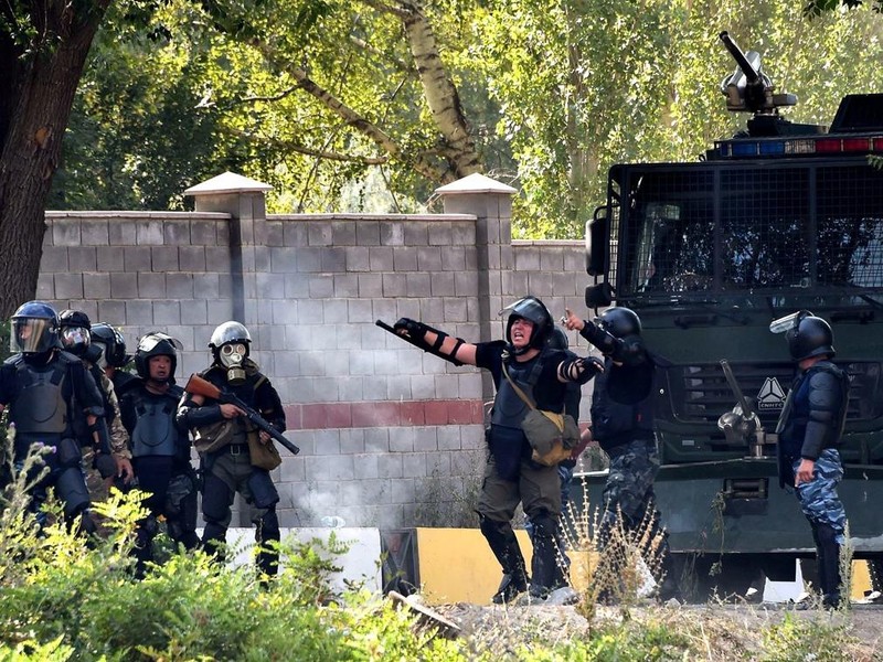 Các thành viên lực lượng đặc biệt Kyrgyzstan ra hiệu với nhau trong cuộc xung đột.