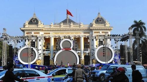 Nhà Hát Lớn Hà Nội chuẩn bị cho một buổi công diễn ngoài trời vào đêm giao thừa (ảnh: AFP)