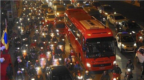 Một quang cảnh đường phố Việt Nam trong giờ cao điểm với xe buýt, xe máy, xe ô tô và giờ có cả cơ hội cho những chiếc siêu xe Rolls - Royce xuất hiện (ảnh: AFP)