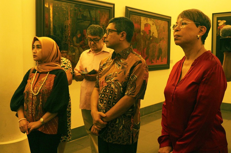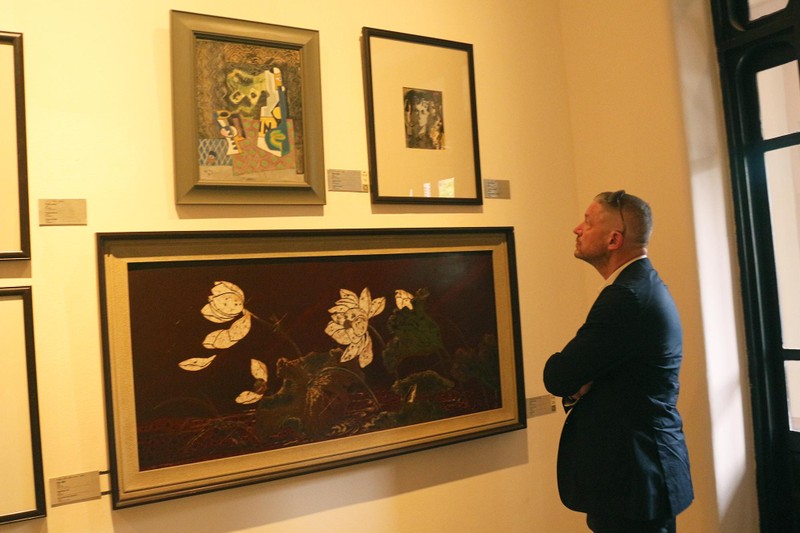 Trong buổi đón tiếp các đại sứ và đại diện tổ chức văn hóa vừa qua, ông Nguyễn Anh Minh - Giám đốc Bảo tàng - đã giới thiệu những nét phác thảo về quá trình sáng tạo tranh sơn mài. Ông Minh cho biết nền mỹ thuật Việt Nam đã sớm có sự giao lưu với hội họa phương Tây, ngay từ đầu thế kỷ 20, thông qua Trường Cao đẳng Mỹ thuật Đông Dương. Các thế hệ họa sĩ đầu tiên của ngôi trường này không chỉ được tiếp xúc với những chất liệu ngoại nhập như sơn dầu, mà cũng chính tại đây họ cùng với các nghệ nhân nghề sơn đã nghiên cứu, thử nghiệm chất liệu sơn ta truyền thống để biến nó thành một chất liệu cho hội họa - đó chính là tranh sơn mài.