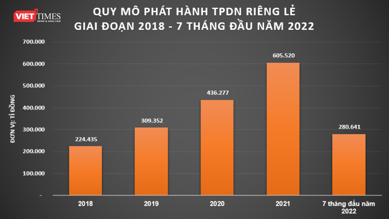 Theo Bộ Tài chính, tổng khối lượng trái phiếu doanh nghiệp (TPDN) phát hành riêng lẻ trong 7 tháng đầu năm 2022 đạt 280.641 tỉ đồng (tương đương cùng kỳ năm trước).