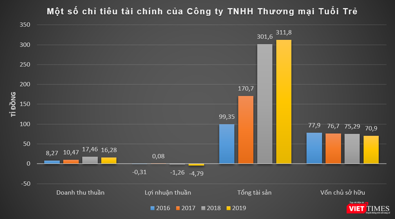 Dữ liệu của VietTimes cho thấy, trong 4 năm trở lại đây, Tuổi Trẻ chỉ báo lãi duy nhất 1 lần vào năm 2017 với lãi thuần chỉ là 80 triệu đồng. Các năm 2016, 2017 và 2019, công ty này lần lượt báo lỗ thuần ở mức 0,31 tỉ đồng, 1,26 tỉ đồng và 4,79 tỉ đồng.