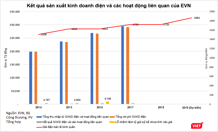 Hơn nữa, giá thành sản xuất kinh doanh điện vẫn chưa tính tới các chi phí liên quan đến chênh lệch tỷ giá. Khoản chi phí này, tính đến năm 2016, đã lũy kế lên tới 9.795 tỷ đồng, gấp tới gần 5 lần kết quả sản xuất kinh doanh điện trong kỳ mà EVN đã đạt được (năm 2017 số liệu này chưa được công bố).