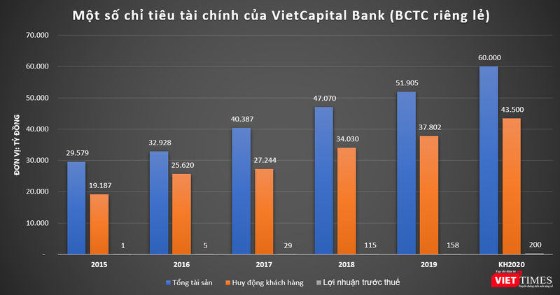 Năm 2020, VietCapital Bank đặt mục tiêu tăng quy mô tài sản thêm 16%, đạt mức 60.000 tỷ đồng. Nguồn vốn huy động đạt trên 43.500 tỷ đồng, tăng 15% so với năm 2019. Nhà băng này đạt mục tiêu lợi nhuận trước thuế riêng lẻ đạt 200 tỷ đồng, tăng 27% so với năm 2019.