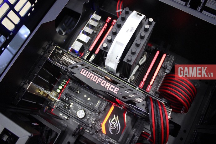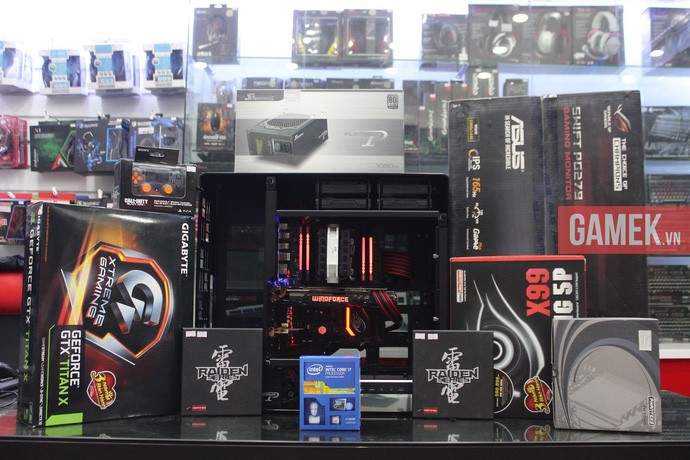 Được biết, bộ máy tính này sử dụng những linh kiện cao cấp bậc nhất hiện nay từ trong ra ngoài như VGA TiTan X Extreme từ Nvidia, kết hợp với CPU Core i7 5820K, mainboard X99, vỏ case In Win 909 và màn hình Asus chuyên game cực khủng PG279Q IPS 165Hz. Toàn bộ dàn máy được lắp đặt tại công ty Hà Nội Computer.