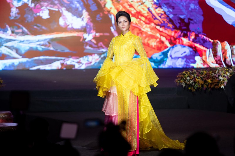 Trong tà áo dài vàng đơn giản của KINZU Phạm Sĩ Toàn kết hợp cùng quần đen đậm chất Sài Gòn xưa, hoa hậu H’Hen Niê gây chú ý cho người đi đường khi quyết định tự chạy xe máy đến chương trình bế mạc Lễ hội Áo dài TP.HCM 2019 mà không phải là ngồi xe hơi riêng như thường lệ. Cô bật mí bản thân rất thích mặc áo dài đi trên phố vào buổi chiều, là dịp để cô ngắm đường phố, vừa chủ động hơn trong di chuyển.