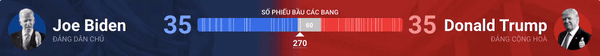 Hiện tại, ông Joe Biden có 224 lá phiếu đại cử tri, Tổng thống Trump có 213. Người nào nào giành được 270 phiếu đại cử tri sẽ giành chiến thắng.