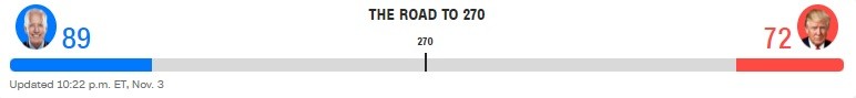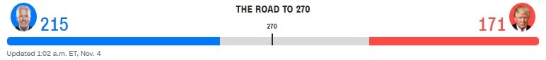 Dựa trên dữ liệu của CNN, ông Joe Biden hiện có 224 phiếu đại cử tri, trong khi Tổng thống Trump có 213.