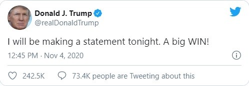 Ông khẳng định rằng các bang nơi mà số phiếu hiện tại cho thấy ông đang dẫn trước nên đưa ra kết quả theo hướng có lợi cho ông, mặc dù một số lượng phiếu đáng kể chưa được đếm.