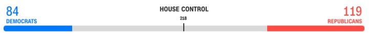 Tại Hạ viện, đảng Dân chủ giành được 84 ghế. Đảng Cộng hòa giành 119 ghế.