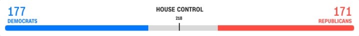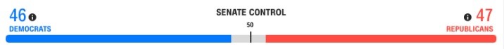Dựa trên dữ liệu của CNN ở thời điểm hiện tại, đây là tỷ số giữa hai đảng Dân chủ và Cộng hòa trong cuộc đua tại lưỡng viện: