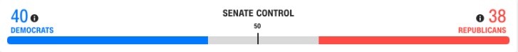 Đảng Dân chủ đã giành được 40 ghế ở Thượng viện. Đảng Cộng hòa giành 38 ghế. Cả hai bên cần 51 ghế để giành thế đa số.