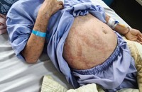 Tại Khoa Nhi, bệnh nhân được tiếp nhận trong tình trạng suy hô hấp, bàn chân sưng đỏ, nhiều vùng hoại tử kèm lá cây còn dính. Vùng tổn thương đã lan lên cẳng chân, nổi nhiều bọng nước lớn, kèm rối loạn đông máu, suy gan, suy thận.