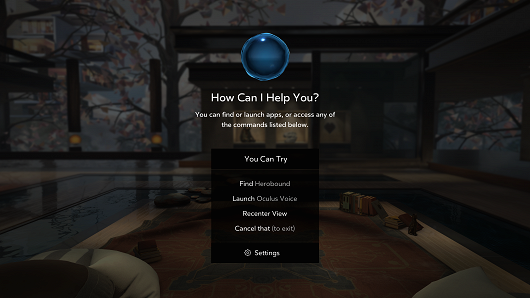 Giao diện người dùng Oculus Voice mà bạn nhìn thấy khi sử dụng tai nghe thực tế ảo Oculus Rift của Facebook.